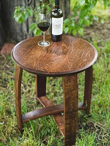$174.99 A beautiful hand-made wine barrel side table. Goes well with our Adirondack Chairs!